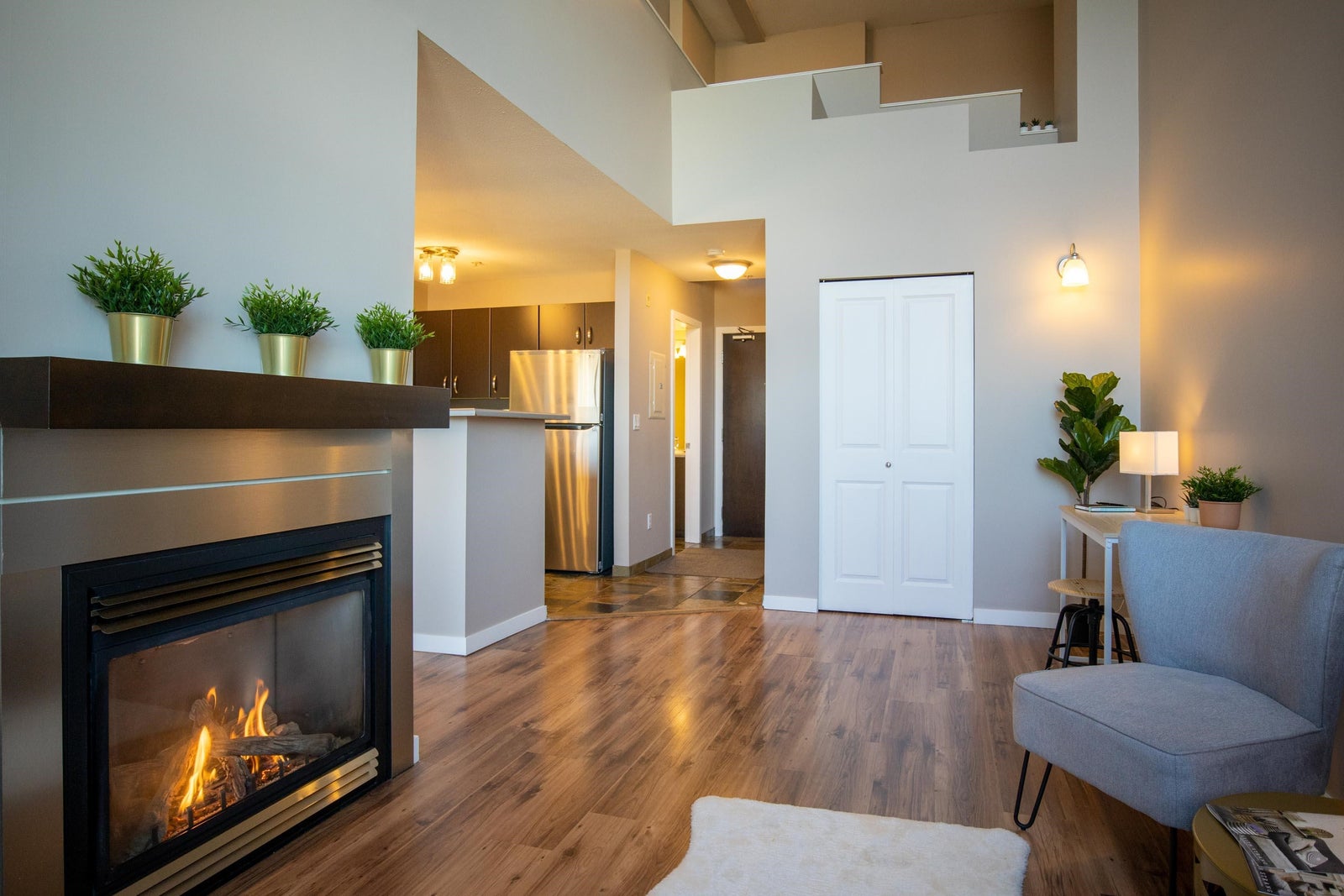 Spacious top floor 1 bedroom loft w/mountain view and 18 ft. ceiling. 2 decks, one covered, tile entrance, warm laminate floors and carpet to the loft, new stainless appliances, as well as new full size washer/dryer. gas fireplace, floor to ceiling windows, 1 storage + 1 parking, the list goes on. this is a must see, nothing to do but move in, or ready for your tenant, this is a great investment as well. Walking distance to Skytrain, public transportation, shopping, Whalley Athletic Park, Tom Binnie Park and Chuck Bailey Recreation Centre, and more. Amenities include Club House, Sauna and Hot Tub among others. Open house Saturday/Sunday December 10th/11th 2-4.