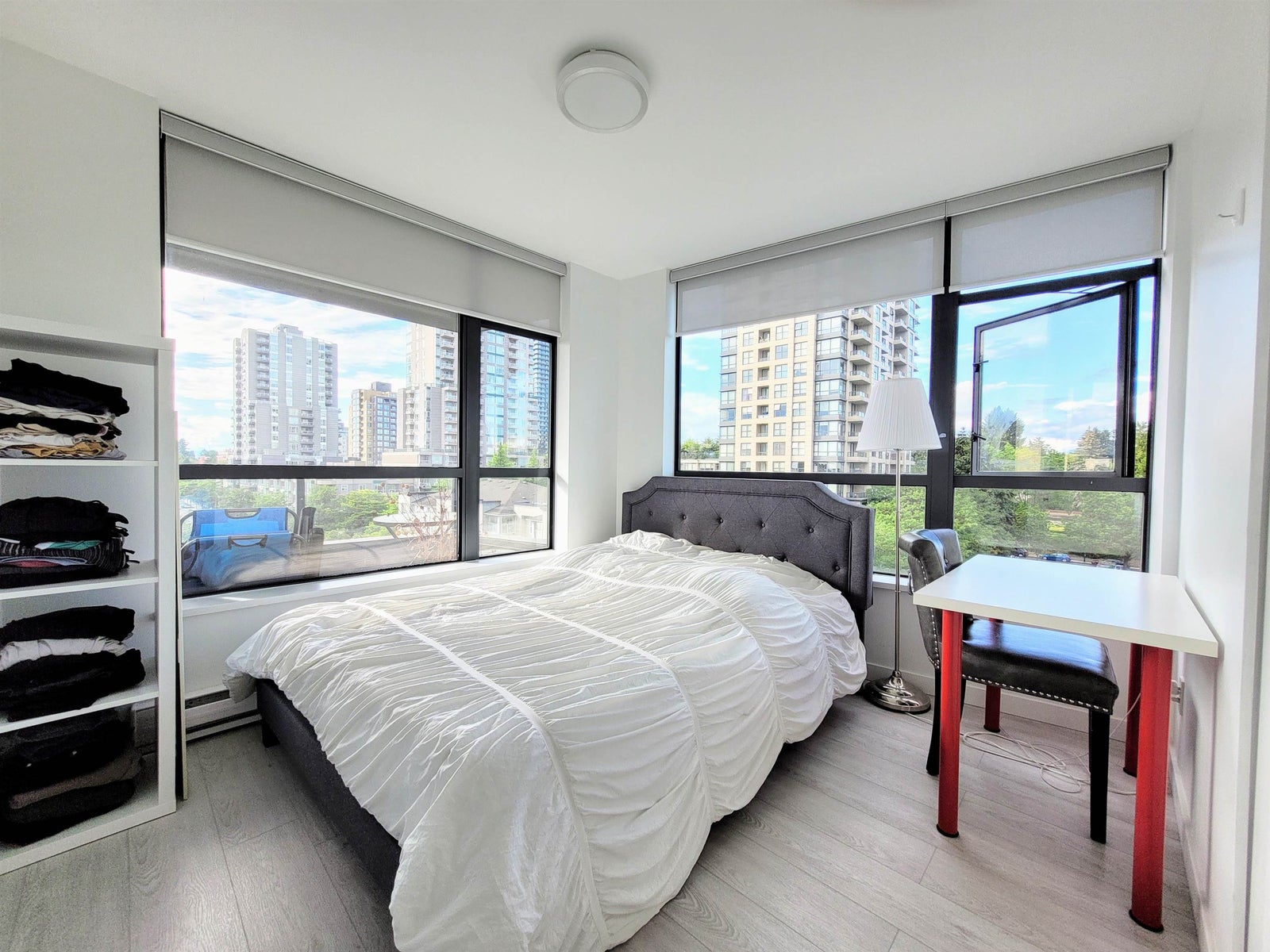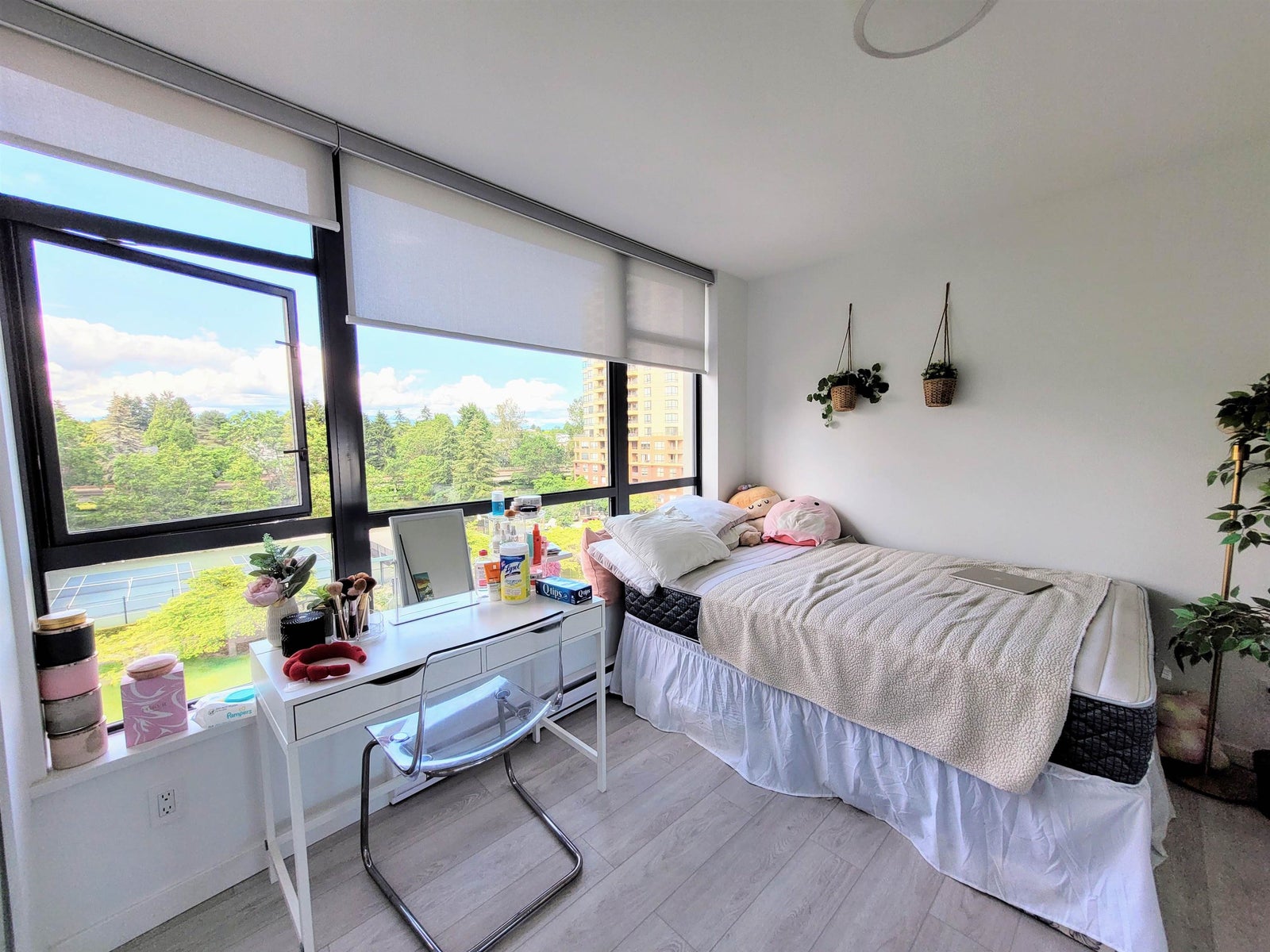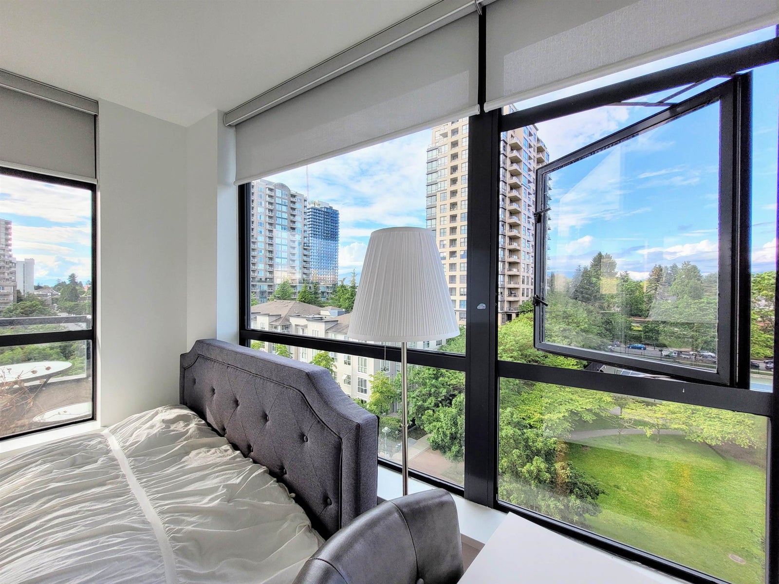 RARE & SPACIOUS 3 bed and den northwest corner condo. Panoramic city + mountain views over green spaces. Airy interior with natural cross-breeze. Over a thousand square feet plus a large 87-sqft balcony. Numerous renos including Vinyl plank flooring throughout, baseboards, flat ceiling, new blinds, painting, light fixtures, new appliances and more. Parks and transit within walking distance, sports amenities and dog off-leash park. Kingsway is only a block away with lots of local shops and restaurants. Very safe, mature and quiet neighbourhood. Metrotown is only two Skytrain stations away. Burnaby Central Park is 5 minutes walk. R4 rapid express bus service to and from UBC. Great family home and investment opportunity. Open houses on Saturday and Sunday July 13th/14th from 2:00PM to 4:00PM.